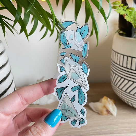Clear Sticker Bird Skull in Teal Palm Leaves