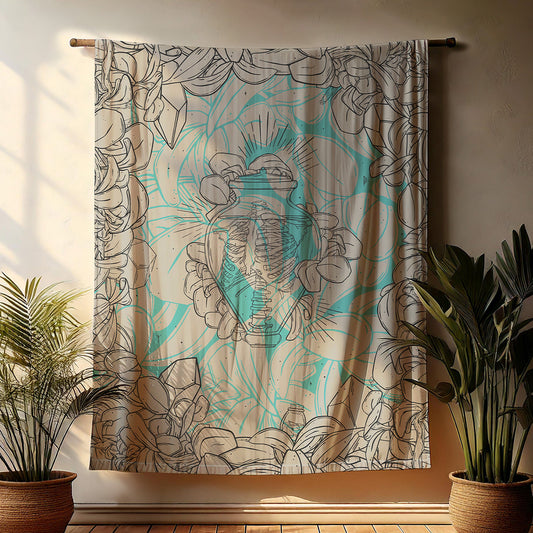 Lion Skull Art Print • Teal Tropical Gothic Jungle Decor