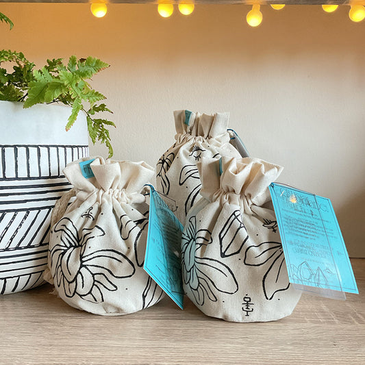 The Tropical Magic is a calmer take on forests taking over. Using crystals and potion pots, with the occasional skeleton, this time an outlined style of illustration. The inspiration comes from nature thriving and surviving, taking space, to remind us that humans are only a fleeting piece of this intricate puzzle.