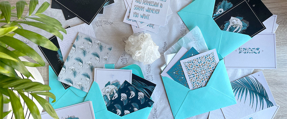 Get an assortment of three postcards if you'd rather get smaller Monstera Skulls prints instead! Looks cute sitting on your desk or a series of mini frames hanged all together like a mural for smaller spaces.